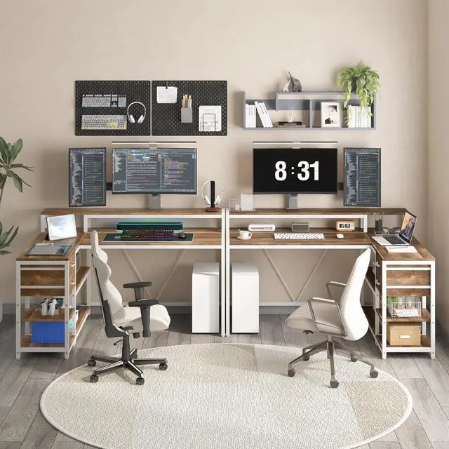 Spacious Workspace with Extended Monitor Stand: Designed with a sizable desktop and a high-raised monitor stand, it offers plenty of space for dual-monitors or gaming setup. The desk maintains a clear surface for traditional paper-and-pencil tasks, and at 30 inches high, offers ample legroom, ensuring comfortable working hours