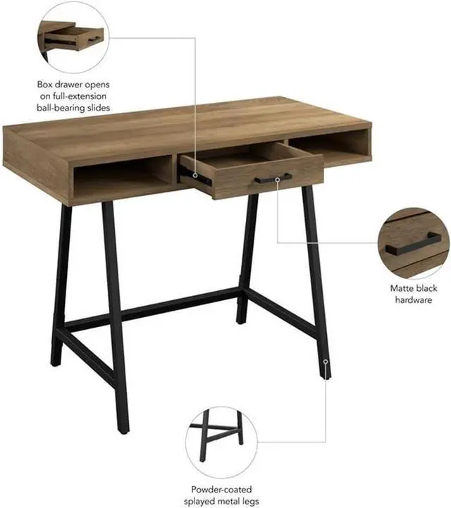 PRACTICAL STORAGE: Office Desk boasts practical storage space for all your needs. Box drawer opens on full-extension ball-bearing slides and keeps writing utensils and small office supplies organized, while 2 open compartments are ideal for storing work-in-progress and frequently used items.
