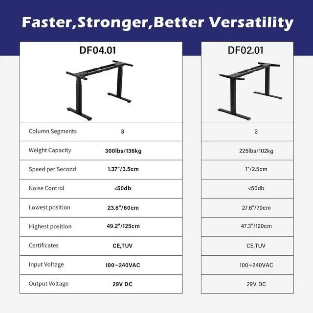 3-Stage Column with Dual-Motor: Powerful dual-motor lift system for 3-stage column is able to adjust the height more smoothly, evenly and quickly at a speed of 1.37 ( 3.5 cm)/second with low noise. The quiet and fast movement improves focus and efficiency.