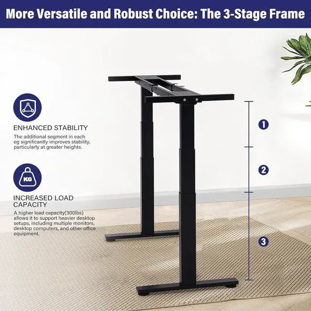 Larger Support Capacity: Sturdy construction with heavy-duty powder coating steel frame and powerful dual-motor system enables to support larger load capacity up to 300lbs/136kg. Rest assured to place monitors, game consoles, CPU, printer and more office supplies.