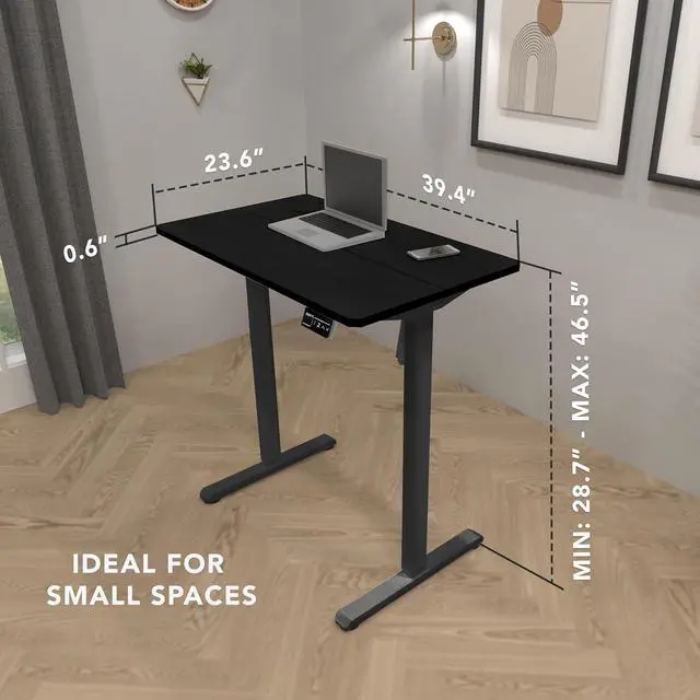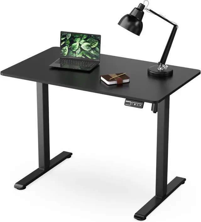 Mount-It! Electric Standing Desk Adjustable Height 40x24 Compact Sit Stand Desk with Memory Presets, Home Office Workstation, Ergonomic Small Computer Table, Black Frame and Black Top