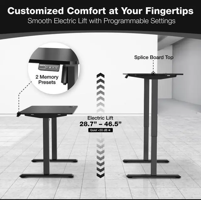 • Electric Height Adjustment with Memory Presets. Seamlessly switch between sitting and standing with the touch of a button. Save your preferred heights using the digital control panel with 2 memory presets for daily ergonomic comfort.