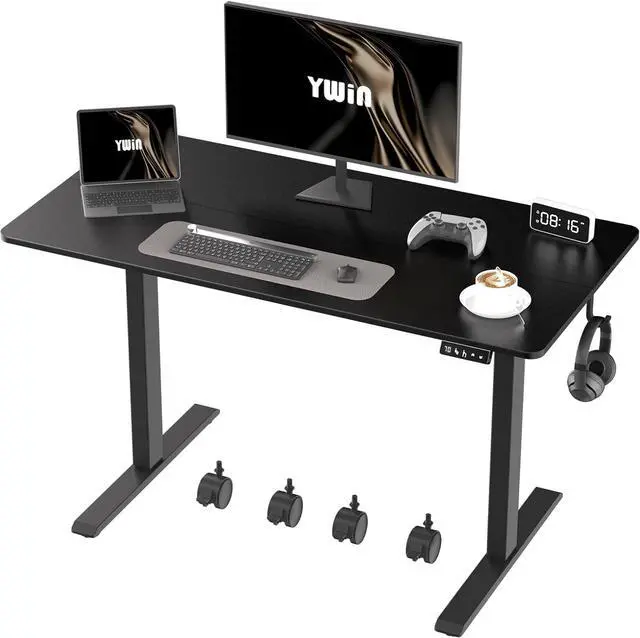 SPACIOUS WORKSPACE - The 55" x 24" desktop of Ywin standing desk provides ample room for all your essentials, from dual monitors to notebooks and coffee mugs.