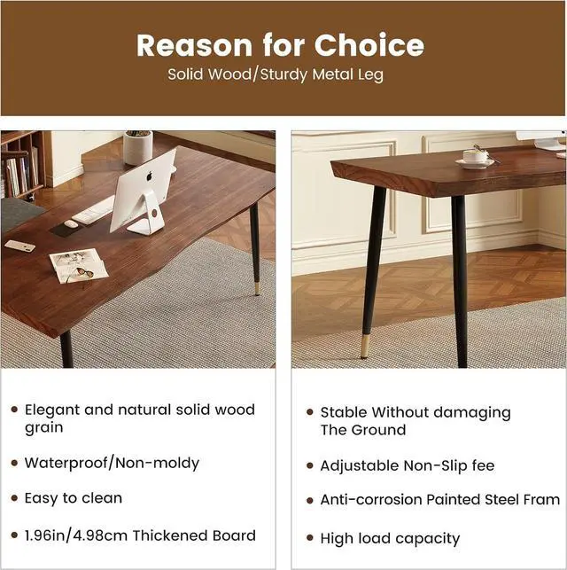 Thicken Live Edge DesktopFeatures an extra-thick 1.9 " live edge solid wood top that showcases the natural beauty of wood grain. Paired with a robust metal frame, this desk table provides exceptional stability for heavy use