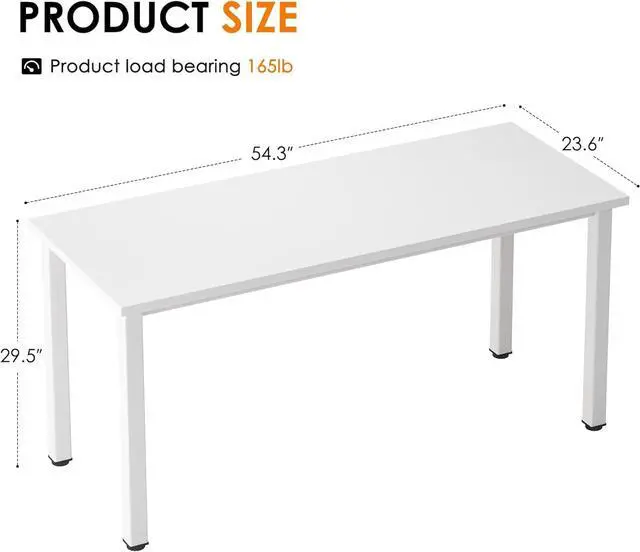 Large White DeskThe computer desk measures 54 inches in length, 23.6 inches in width, and 29.5 inches in height. It provides ample space for writing and other home office activities, with plenty of legroom and storage