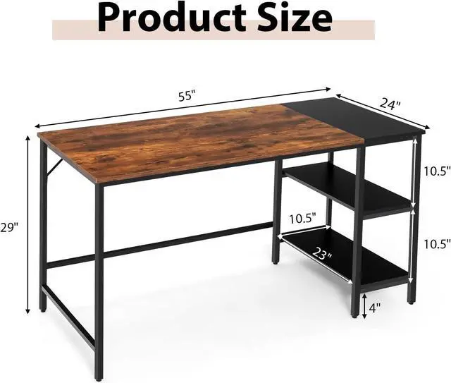 Working Needs: With the size of 55 x 24, the desktop is wide enough to accommodate 2 monitors, keyboard documents, books and other office supplies. In addition, spacious workstation releases you from trouble of messy small stuffs, thus to help you concentrate on working for higher efficiency.