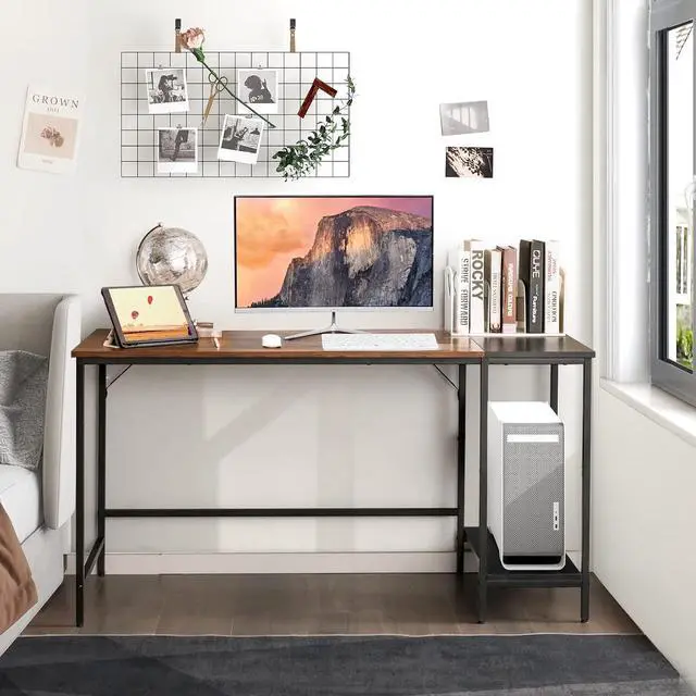 2-tier Open Shelf to Enlarge Storage: 2-tier open shelf provides multi-purpose storage space for a variety of items, which frees up more desk space. Any office essentials placed on it can be accessible easily. Also, you can remove the storage shelf to make extra room for computer host or larger items.