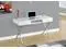 Modern desk in a high gloss white Finish Sturdy and stylish silver metal legs 2 large storage drawers and 1 open concept shelf Great for condos, lofts, apartments, home offices, hallway, kitchen, living room Finished on all sides