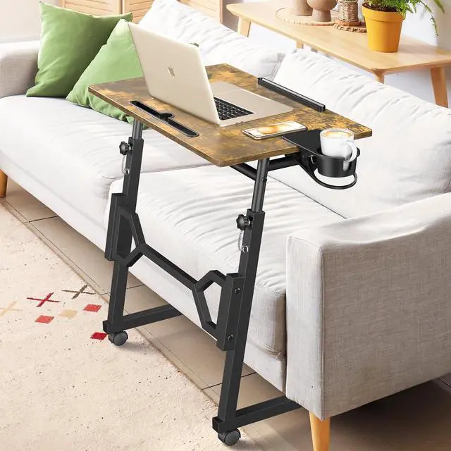 Treadmill Tnthusiasts: The forward sloping table legs are designed specifically for treadmill enthusiasts, making it easy to use during exercise, this desk features a wide 21.65 inch base that fits around most treadmill models, desk side huge clip drink mug holder design let you store drinks while running