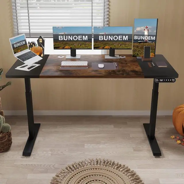 [Electric Height Adjustable]: BUNOEM standing desk comes with 4 preset memory buttons which help customize to the desired heights from 27" to 45" inches with collision-avoiding feature. Both the home office rising experience and quality of the products are trustworthy. This height adjustable desk is supported by a very strong double beam metal frame. It can hold up to 176 Lbs.