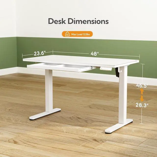 Electric Height Adjustment: The standing desk with drawers is equipped with a robust motor that you can smoothly adjusts the height from 28.3 inches to 46.5 inches. Seamlessly transition between sitting and standing positions with the electric height adjustment feature, promoting better posture and a healthier work routine