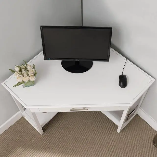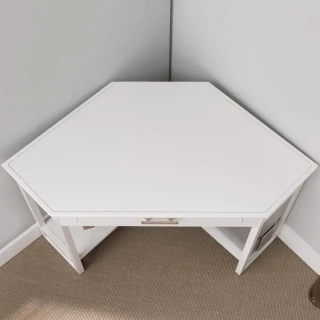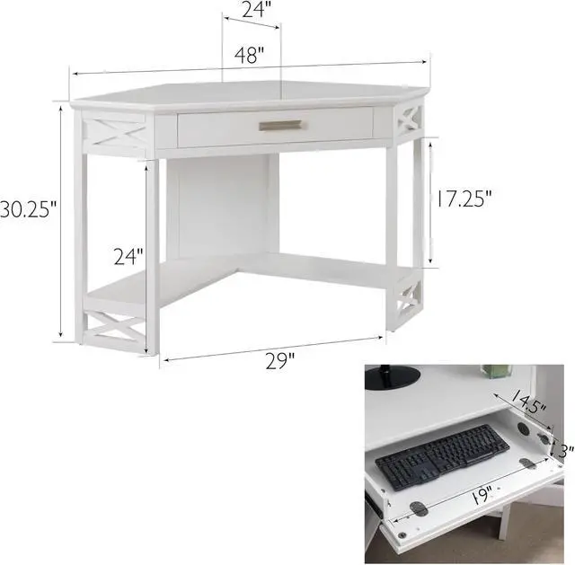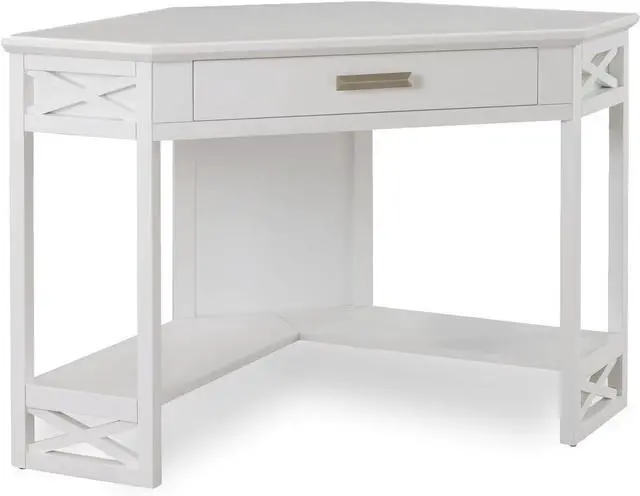 Functional: The Sage Corner Computer Desk by Leick Home, measuring 48" W x 24" D x 30 25" H, offers a stylish and space-efficient solution for home offices, bedrooms, or living spaces with its sleek white finish and classic corner design