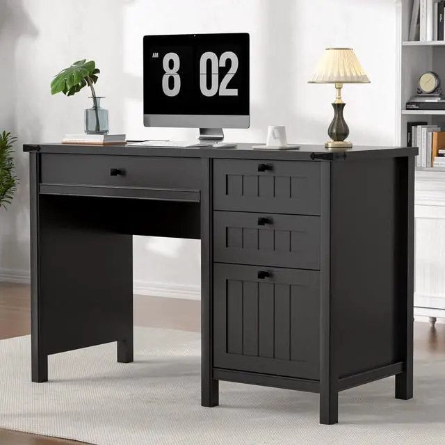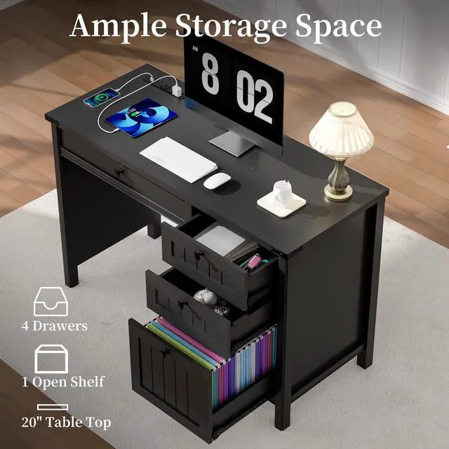 4-Drawer Computer DeskStay organized effortlessly: 2 quick-access drawers for daily essentials, 2 vertical file drawers for documents, to store your paper pads, notebooks, calculator, and other things you want close at hand.