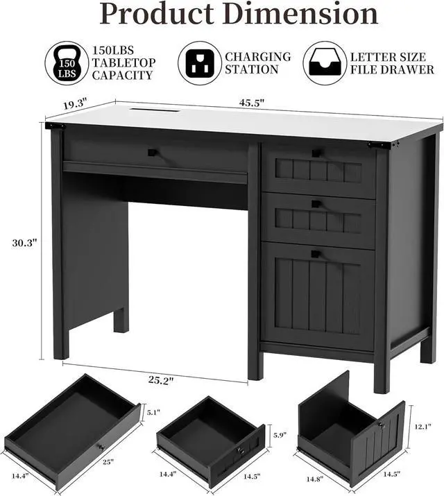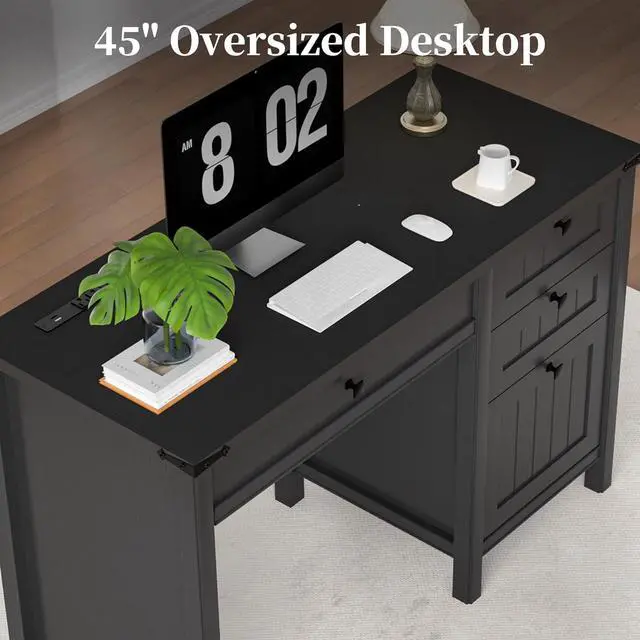 45" Widened Desktop Computer DesksA spacious 45-inch scratch-resistant surface comfortably holds dual monitors, laptops, and creative projects, while the subtle embossed texture adds modern farmhouse elegance to your workspace.