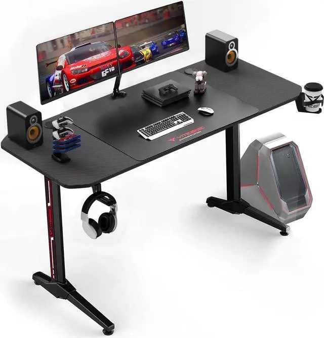 Oversized Desktop with Mouse Pad 55.1 x 23.6 inch carbon fiber desktop, the large PVC laminated surface and mouse pad provides massive space for your gaming monitors, PC, gaming keyboards and other gaming gear