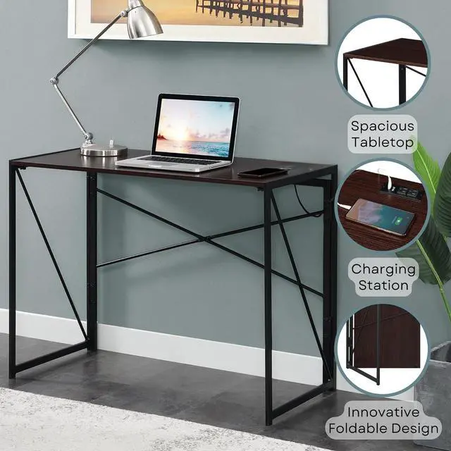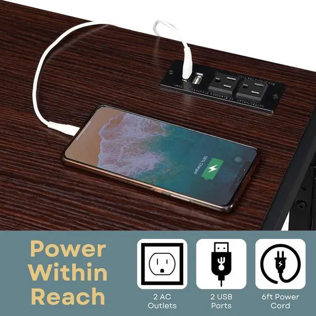 POWER CLOSEBY: This modern office desk includes a charging station conveniently located on the desktop equipped with 2 AC outlets and 2 USB ports. Keep cell phone, tablet, laptop, and more fully charged at all times!