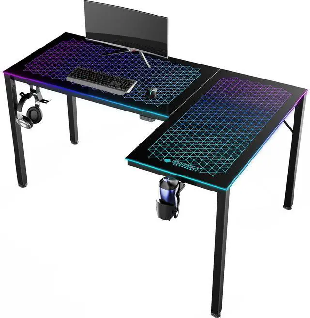 [ Patented Innovative Design ] - Unique combination of Music Sensing RGB LED Lighting Effects & Cool Glass desktop provides a full spectacle as your desk, lights, and music all sync. This revolutionary GTG L60 lights up glass desk design from Eureka offers ultimate atmosphere for gaming, music studio, home office, content creating, birthday, Christmas & New Year gifts indoor decorations etc