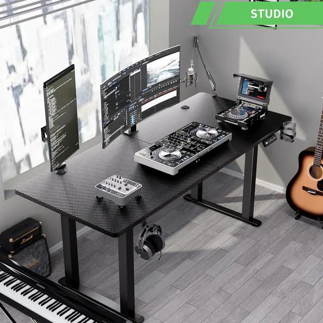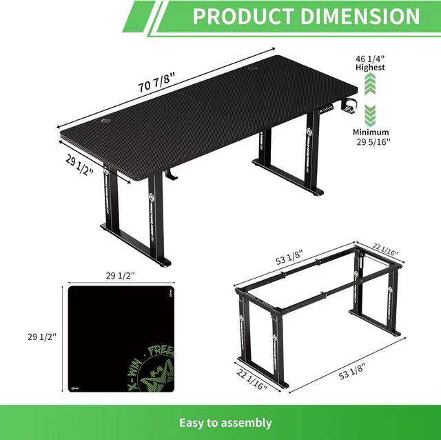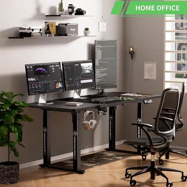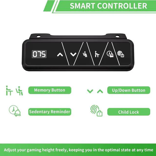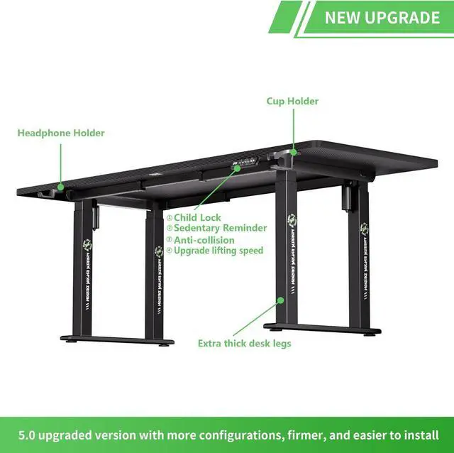 Ergonomic Sit Stand Desk--Standing periodically throughout the long gaming time can relieve tension in the neck, back, and shoulders, increase blood flow, and reduce stress. With our sturdy large standing desk, you can easily transition from sitting to standing in seconds. Equipped with a dual motor lift system for smooth height transitions, memory control panel for customizable settings, and solid legs supporting up to 220 lbs!