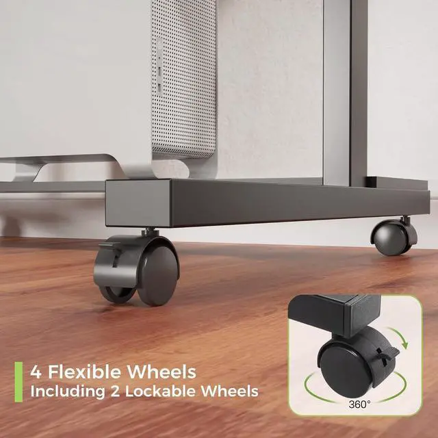 [Movability]: This multi-use desk is equipped with four swivel casters that are lockable to allow a wide range of movement and flexibility.