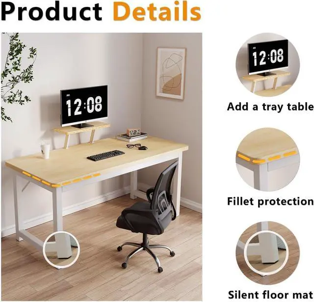 [Small space desk]: The corners of the work desk for home office are designed with rounded corners to avoid scratches even in small spaces, and the student desk add mute foot pads to protect the floor from scratches and give you a quiet study, writing work, environment.