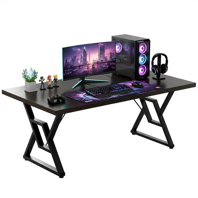 Elevate your workspace with a desk that blends durability, style, and everyday practicality. The reinforced X-frame steel base pairs with an extra-thick engineered wood top to create a solid, stable foundationideal for long hours of focused work or multitasking. Its wide desktop provides ample room for dual monitors, paperwork, and office essentials, while the water-resistant and scratch-resistant surface keeps the desk looking clean and polished over time. Adjustable foot pads ensure steady placement on uneven floors, and the sleek modern design makes it a versatile fit for home offices, corporate environments, and collaborative workspaces alike.