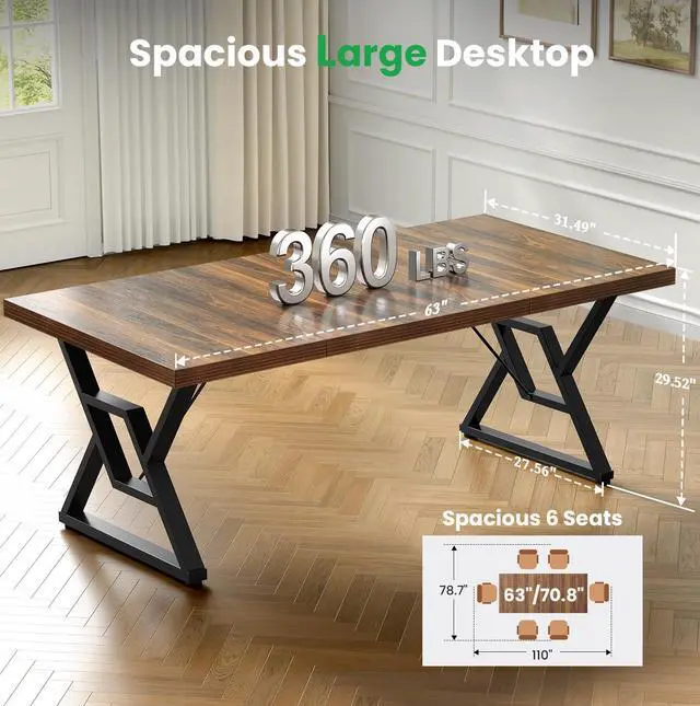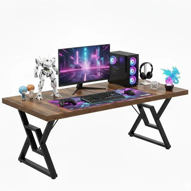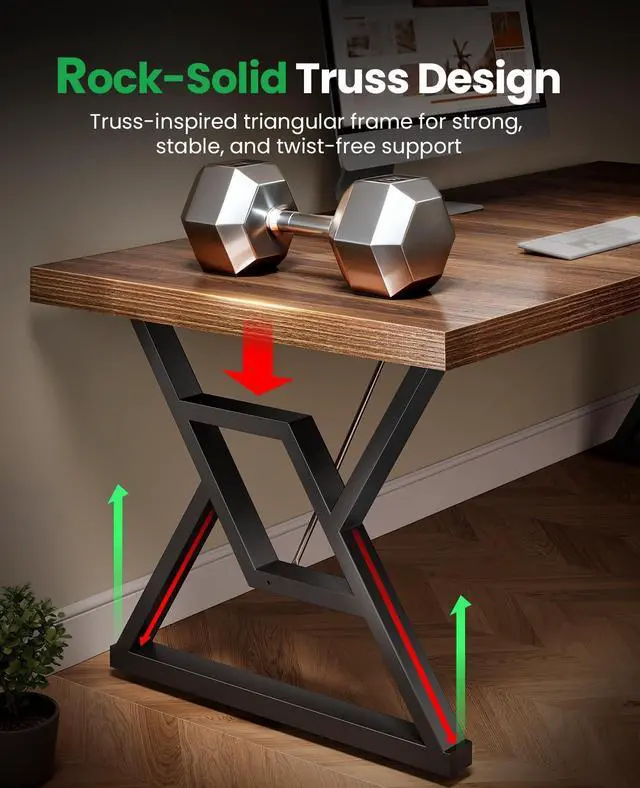 Elevate your workspace with a desk that blends durability, style, and everyday practicality. The reinforced X-frame steel base pairs with an extra-thick engineered wood top to create a solid, stable foundationideal for long hours of focused work or multitasking. Its wide desktop provides ample room for dual monitors, paperwork, and office essentials, while the water-resistant and scratch-resistant surface keeps the desk looking clean and polished over time. Adjustable foot pads ensure steady placement on uneven floors, and the sleek modern design makes it a versatile fit for home offices, corporate environments, and collaborative workspaces alike.