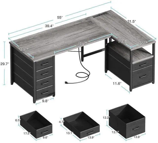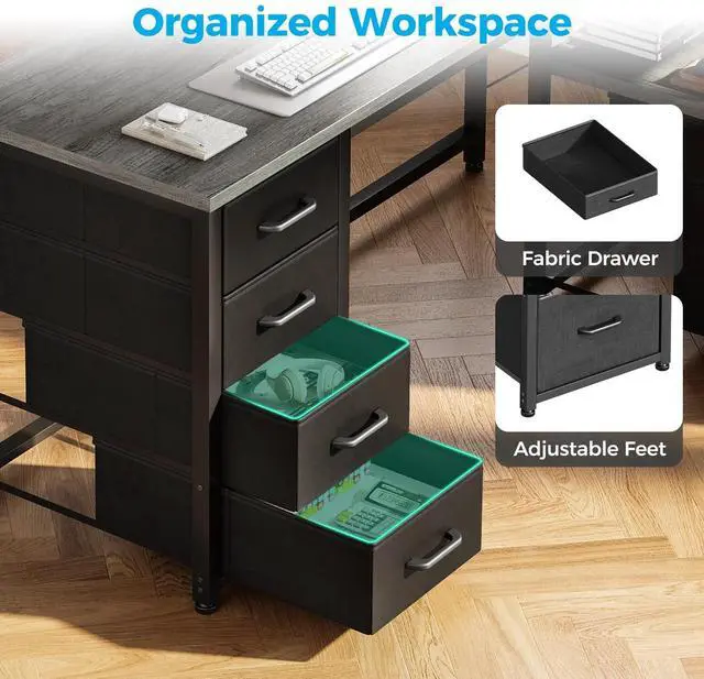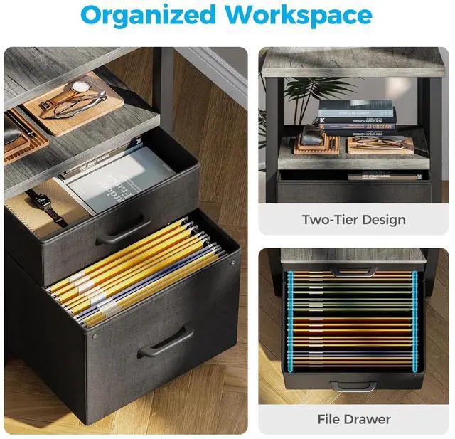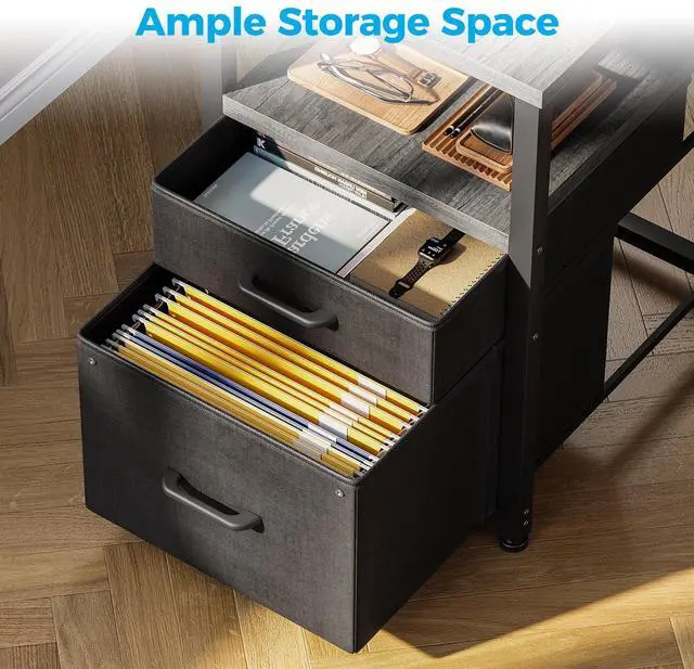 • Ample Storage: Features five soft fabric drawers and a spacious file cabinet for organized storage of documents and office supplies.