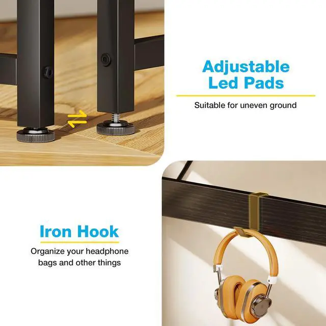 Stable & Secure: Adjustable anti-slip feet protect floors and keep the desk level, even on uneven surfaces.