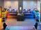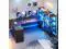 Gaming Desk L ShapeL shaped gaming desk comes with a power outlet, LED lights, storage shelves, fabric drawers, a computer desk that can hold 2 monitors, storage shelves, and a CPU stand. The gaming desk could hold 2 desktop computers and 1 notebook computer. An ideal gaming desk for small rooms to create excellent home office space.