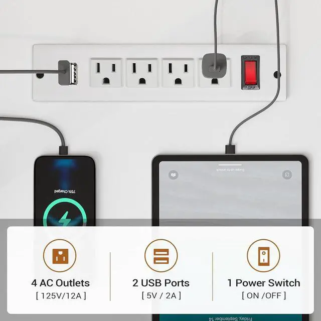 Charging PortOur charging station includes 4-Outlet & 2 USB Ports to provide power for up to 6 devices simultaneously. Also includes an on-off switch, thanks to the on-off switch, one-button power off to ensure safe electricity use, which strengthens security. Power outlet allows you to charge cell phones, tablets, notebooks, etc.
