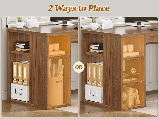Ample SpaceThis office desk has a spacious desktop. It features 3 drawers and a 8 open storage cabinet which can accommodate a large number of files, books, and other office essentials. File drawer with full extension slides holds letter or A4 size hanging files. Three additional drawers feature metal runners and safety stops to keep you and your family safe.