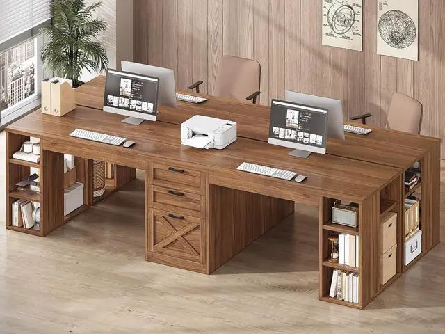 Two Person DesignThe 96.5 Inch - Length size allows 2 person to work side by side without compromising on space. Double writing working space with a 3 storage drawers in the middle. Perfect for your classmates, friends, workmate and you to study, play games and work together. This computer desk effortlessly blends with any furnishings in farmhouse style.