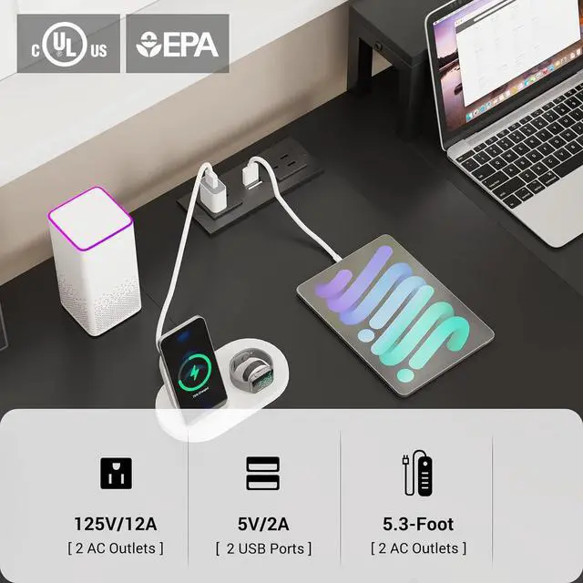 MultifunctionalEquipped with 2 AC outlets and 2 PowerIQ-enabled USB charging ports to provide power for up to 4 devices simultaneously. The keyboard tray is ideal for 108-key or 87-key keyboard + mouse, which can free up more desktop space. The monitor stand can easily raise 2 monitors to a suitable height, reducing the tension and pain of the back and neck.