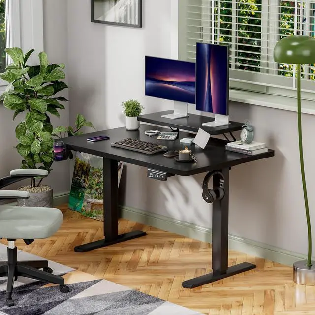 Wide Home Office Electric Height Adjustable Standing Desk Lifting Range 28~46" Computer Desk with Monitor Stand,Black
