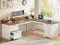 SEDETA Farmhouse L Shaped Desk with Drawers, 63" Office Desk with File Drawers, Wood Corner Computer Desk with Storage, Home Office Desk with Monitor Stand and Storage Cabinet, Brown and White