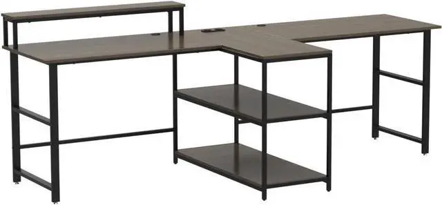 Two Person DesignThe 94.5 Inch - Length size allows 2 person to work side by side without compromising on space. Double working space with a 2-layer storage shelf in the middle. Perfect for your classmates, friends, workmate and you to study, play games and work together. This computer desk effortlessly blends with any furnishings in modern style.