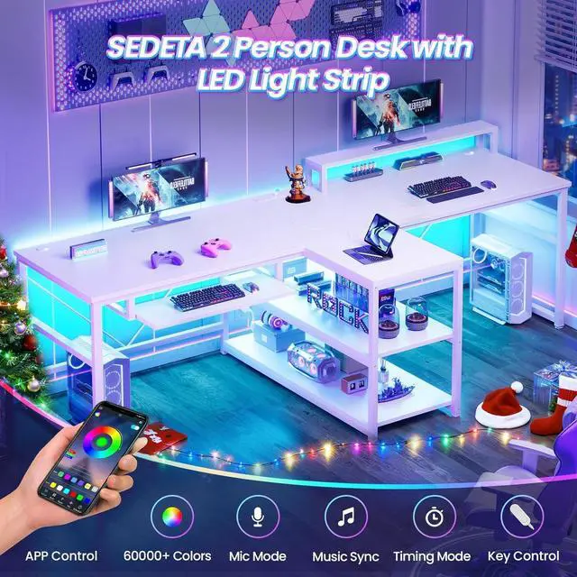 Cool & Smart Led Light Strips The SEDETA gaming desk comes with RGB LED light strip, remote control via APP, Over 60000 colors and 29 flashing modes for your to choose. Led light strip with music sync function, built-in sensitivity adjustable mic, led light color will change with the rhythm of the sound and music. And with timer function, just enjoy it in a smart way, create gaming and working atmosphere. Light up your gaming table with LED light strip.