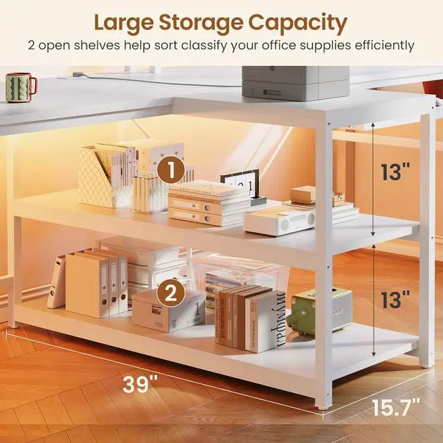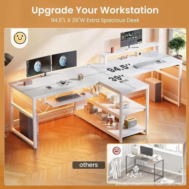 What can you get? 2 person desk + printer stand with storage + 94.5" LED light + power strip with USB interface + keyboard tray + monitor stand. This multifunctional two person desk is convenient for 2 people to use at the same time, and can communicate at close range without disturbing each other. Perfect as computer desk, 2 person desk, home office desk, gaming desk, office desk.