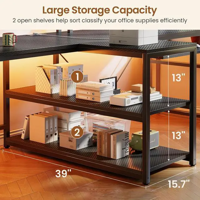 What can you get? 2 person desk + printer stand with storage + 94.5" LED light + power strip with USB interface + keyboard tray + monitor stand. This multifunctional two person desk is convenient for 2 people to use at the same time, and can communicate at close range without disturbing each other. Perfect as computer desk, 2 person desk, home office desk, gaming desk, office desk.