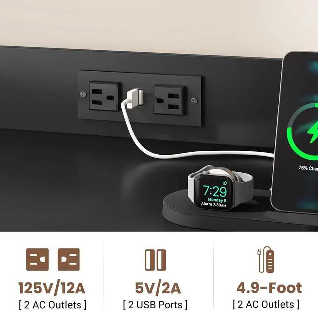 Power OutletThis file cabinet is equipped with 2 AC outlets, 2 USB charging ports to provide power for up to 4 devices simultaneously. Power outlet allows you to charge cell phones, tablets, notebook, etc. This file cabinet with storage can easily keep the living room tidy.