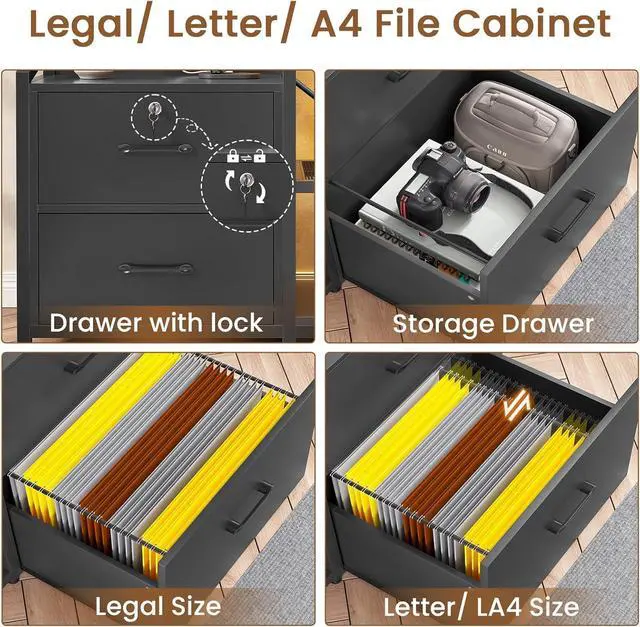 2 Drawer File Cabinet35.4" File Cabinet, a versatile and functional storage solution for your home or office. This filing cabinet features 2 drawers that can accommodate letter, legal, A4 size documents, keeping your workspace organized and clutter-free. 4-tier storage shelf and storage bag keep your home office supplies in tidy and well free up your workspace.