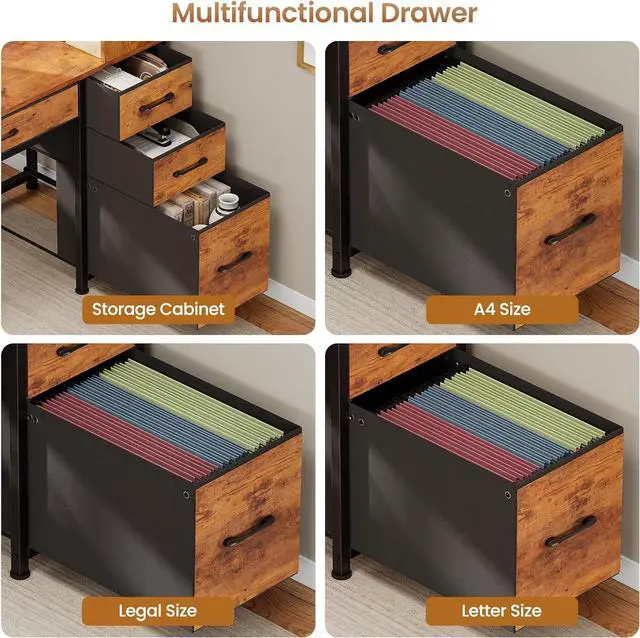 Smart Storage Revolution4 heavy-duty non-woven drawers + 1 file cabinet (holds Letter/A4/Legal size docs) conquer desk chaos. Store daily items, books, files or game figure, collect trophies, and souvenirs in the 3-tier vertical bookshelf, stash snacks/stationery/accessories in the hanging storage bag.