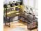 Ample Storage SpaceComing with storage bag, pegboard, 2-tier open storage shelves, and keyboard tray, iron hook with powerful storage space. Top hutch can place files, books, leaving spacious space for writing, paperwork and other home office activities. This corner computer desk provides ample workspace and storage with its L-shaped design and hutch.