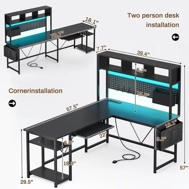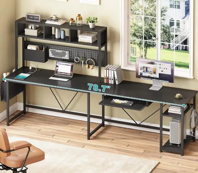Reversible Desk 57.5 inch l shaped desk or 78.7 inch long office desk. The l Shaped desk is perfect for tucking into a corner, it can hold your computer, monitor, keyboard, files, books or CPU stand for home office. Or 78.7 inch two person desk can hold two-person studying or writing no interference. And the top hutch can place left or right according to your needs.