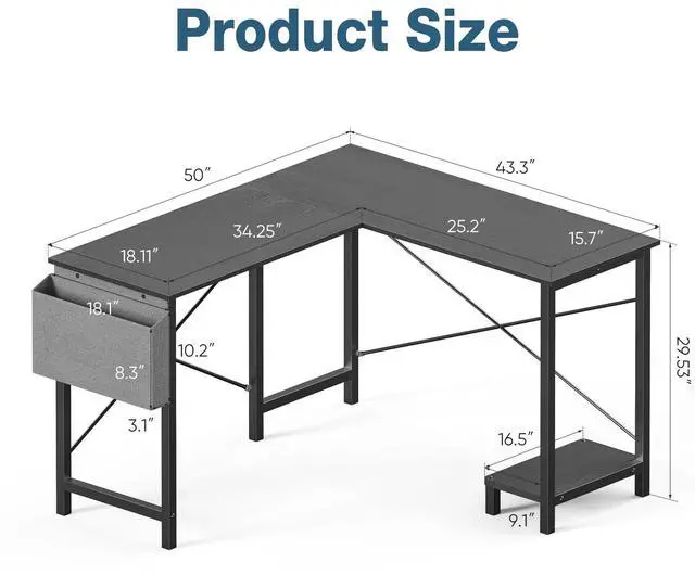 Spacious Workspace: This 50-inch L-shaped computer corner desk offers ample surface area for laptops, monitors, textbooks, and coffee mugs, promoting organization and focus for various tasks.