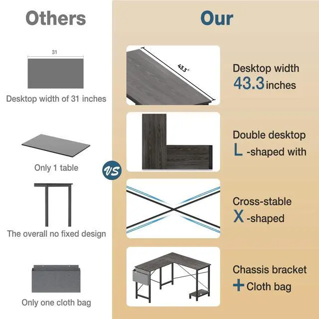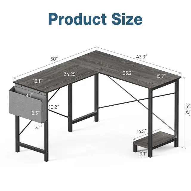 Spacious Workspace: This 50-inch L-shaped computer corner desk offers ample surface area for laptops, monitors, textbooks, and coffee mugs, promoting organization and focus for various tasks.
