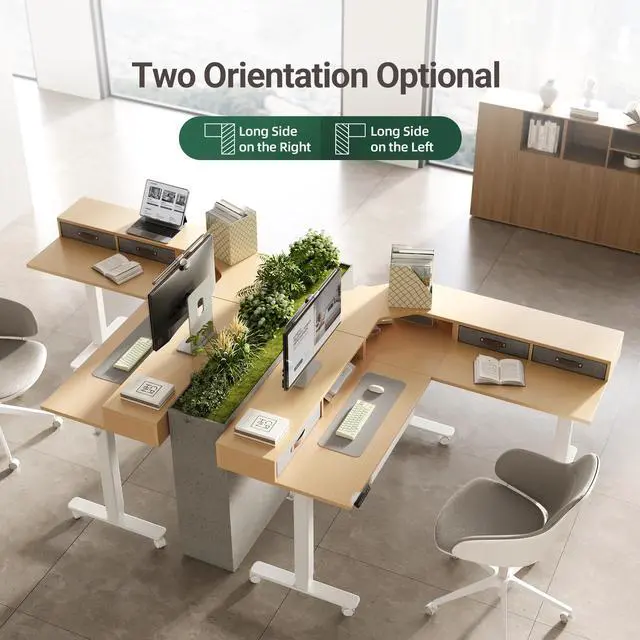 Flexible Layout: The L-shaped design offers adjustable sides, adapting to various compact or spacious office environments for efficient workspace utilization.