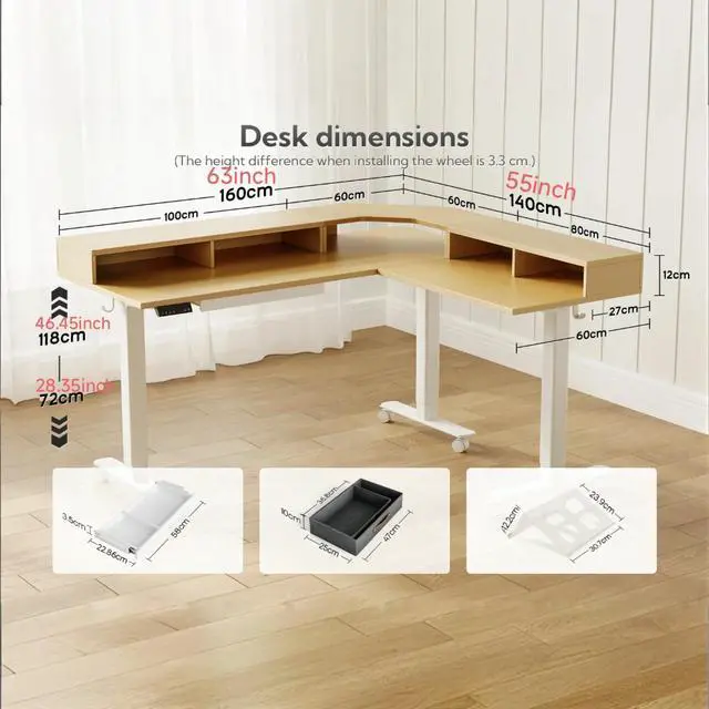 Dual Motor: Equipped with a powerful dual motor for stable and smooth height adjustments, ranging from 28.3 to 46.5 inches.