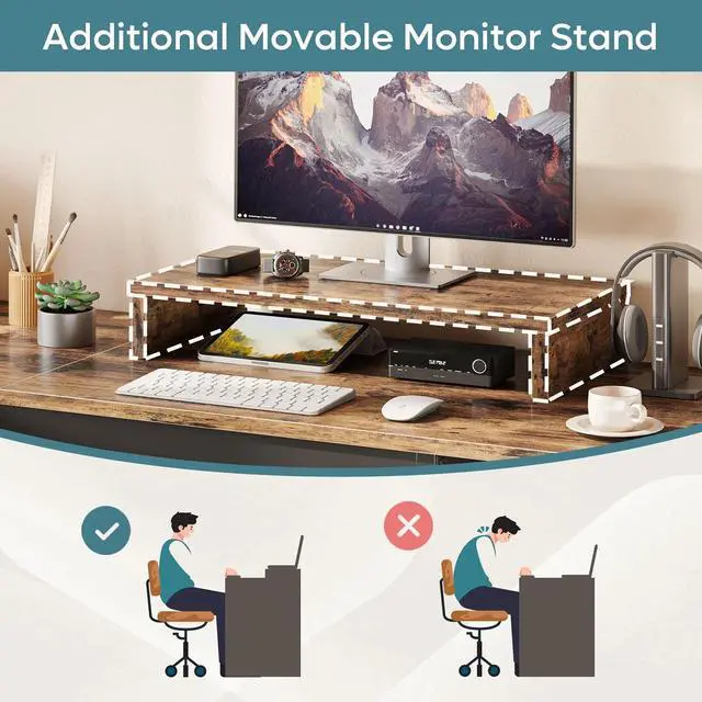 • Ergonomic Monitor Stand: Movable monitor stand ensures a comfortable and ergonomic workstation setup.