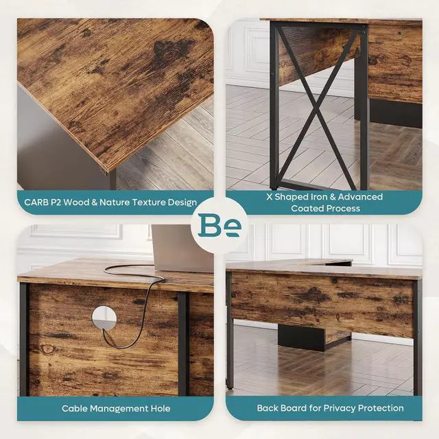 • Reversible L-Shaped: L-shaped storage drawer can be positioned on either side, providing ample workspace and flexibility.